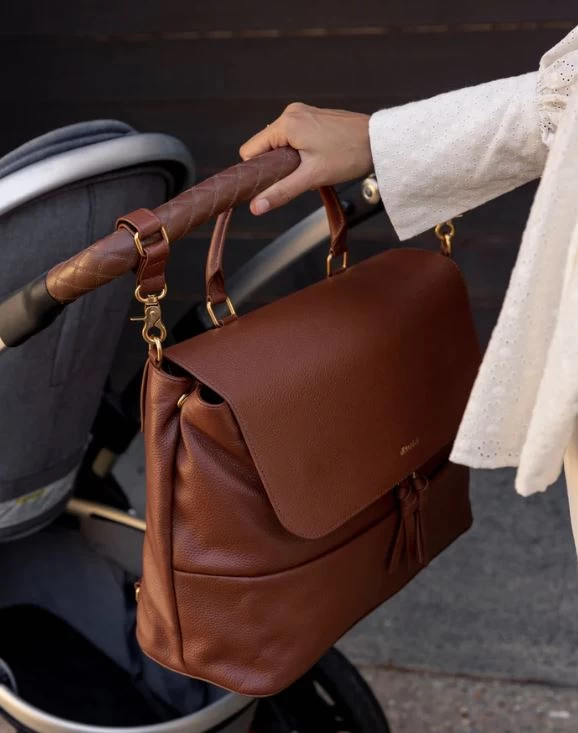 Alf the Label Luxe Pram Straps allow you to convert any Alf baby bag from a handbag, backpack or tote, to a pram bag. Crafted in high quality, full grain leather and outfitted in custom brushed gold hardware with gold-stamped logo. Pram straps are the essential accessory for creating a seamless experience as a parent.