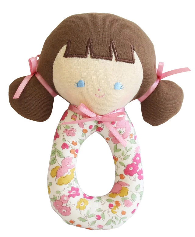 The Alimrose Audrey Grab Rattle Rose Garden is a beautiful first rattle. Lovingly crafted from the finest fabrics and finished with care she will make a beautiful newborn gift for a special baby.