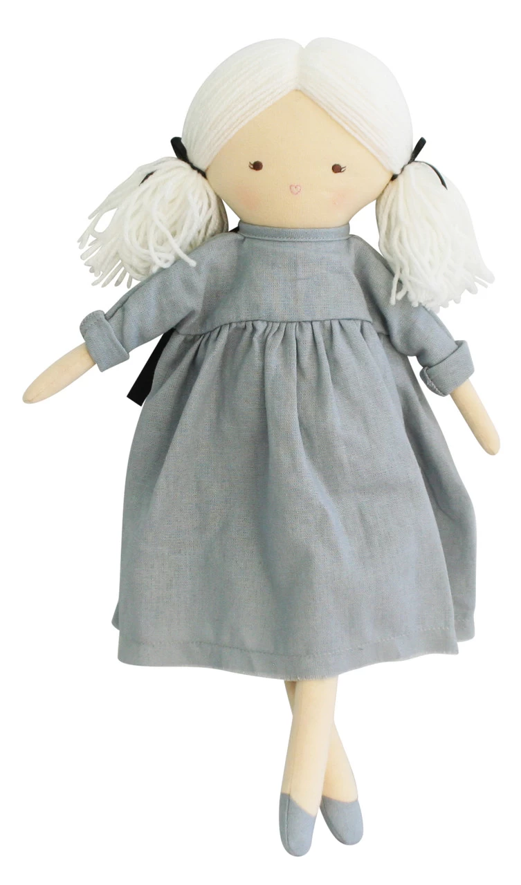 The Alimrose Matilda 45cm Doll Grey is an adorable 45cm doll with gorgeous blonde hair and an on trend grey linen frock. So comfy!