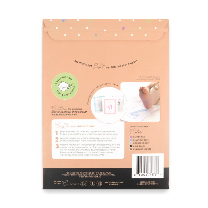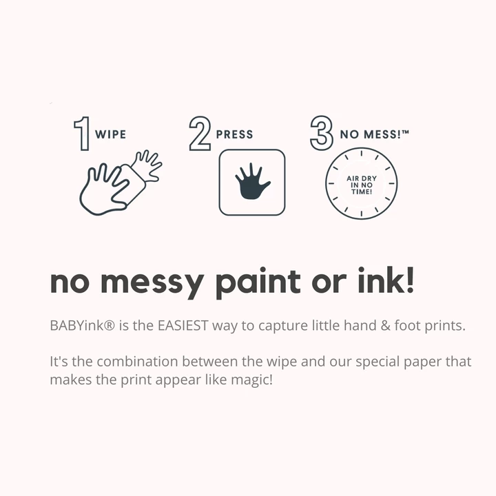 The Babyink Inkless Print Kit is mess Free, Ink-less and safe to use from birth, BABYink® is the perfect way to capture those special little hand & footprints!