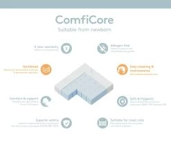 The Babyrest ComfiCore Cot mattress, baby can sleep soundly on a safe, comfortable and breathable surface.