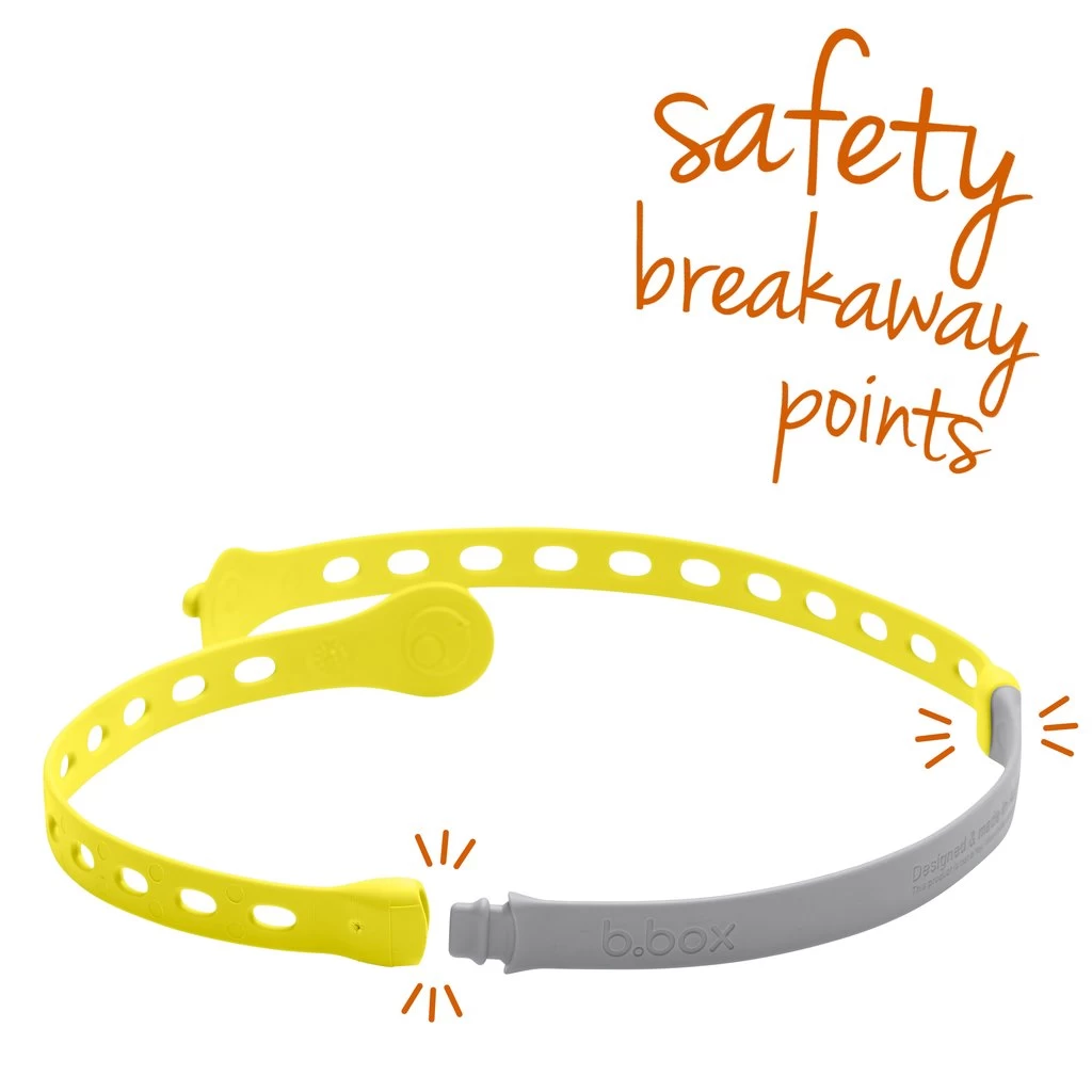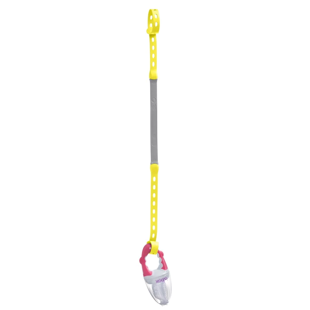 Fully adjustable flexible strap connects bubs cup, bottle or pacifier to the pram, highchair or car seat.