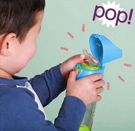 Easy push button pops open the lid, keeping straw tops hygienic when closed and never goes astray.