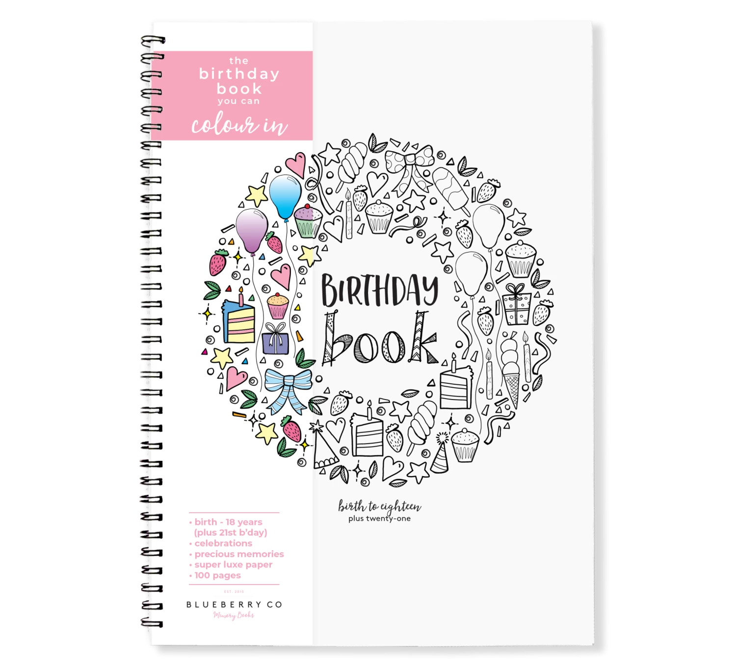Use the Blueberry Co Birthday Book to capture a snapshot of the first 18 years with your tiny VIP
