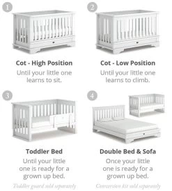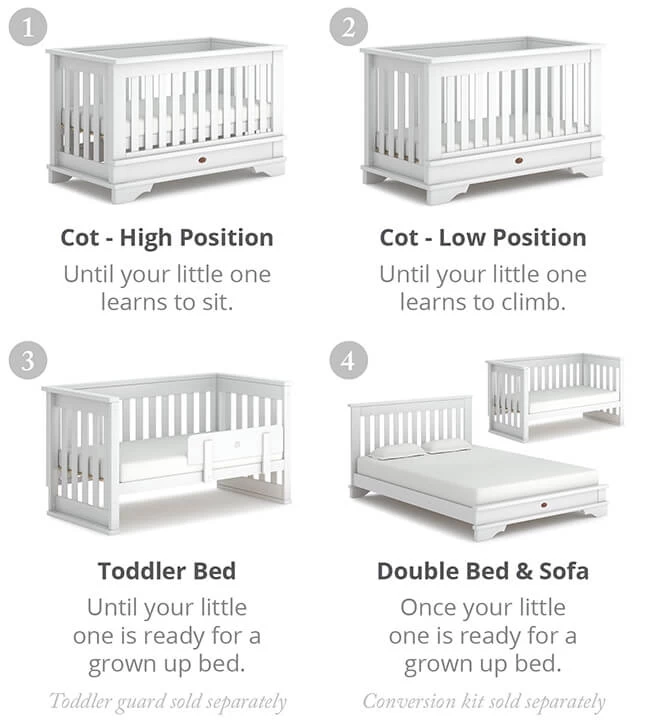 - Converts from cot to toddler bed suitable from birth to around 5 years. Guard panel sold separately.