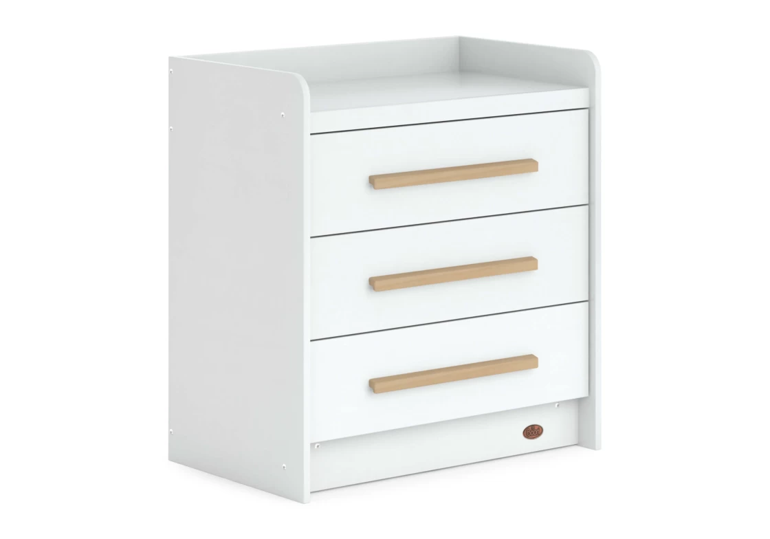 The Boori Neat 3 Tier Changer featuring a modern, muted two-tone oak-effect design, is designed to complement the Natty Range.