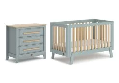 The Boori Turin Cot will add a touch of Nordic charm to your nursery. With a contemporary two-tone design and playful angled feet, the Turin offers a cheerful addition to the nursery.