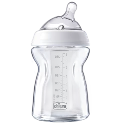 The Chicco Natural Feeding Glass Bottle are practical in clear glass, allows you to see the amount of milk contained and to measure it thanks to the practical numbered scale.