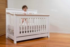 The Cocoon Flair 5 in 1 Cot + Mattress will grow with your newborn until they are in school!