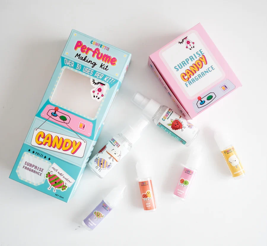 It’s super easy to use – just add the scents you love to the included bottles, add water and voila, you have your very own, one-of-a-kind candy-scented perfume or mystical spell casting spray.