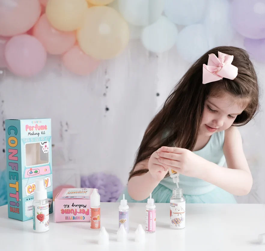 Get creative with our Confetti Blue Candy Scented Perfume Making Kit made with no nasties for kids – just 100% food grade ingredients!