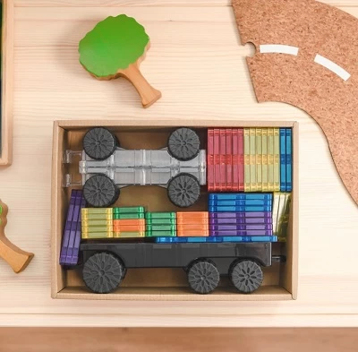 Gear up for epic vehicle fun with the Connetix 50 Piece Transport Rainbow.