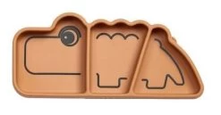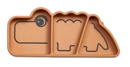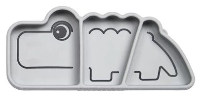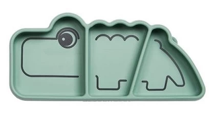 Done By Deer Croco Silicone Stick & Stay Plate comes with three compartments and rounded inside edges to make it easier for your child to eat independently at a young age.