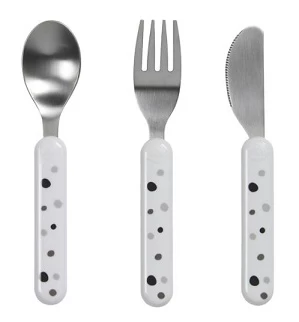 INCLUDES: One Dreamy Dots Cutlery Set with fork, knife and spoon in your chosen colour.