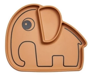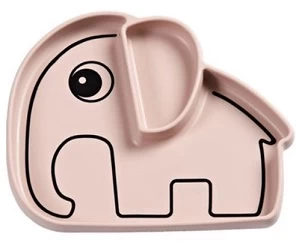 This Done by Deer Elphee Silicone Stick & Stay Plate makes eating fun and easier for babies and toddlers learning to eat independently.