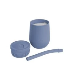 The EZPZ Mini Cup + Straw Training System teaches toddlers to drink from an open cup and safely learn to use a straw.