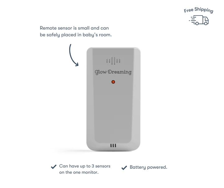 Glow Dreaming Add-on Glow Room Sensor is small and can be safely placed in baby’s room. Additional remote sensors can be purchased to monitor up to 3 rooms