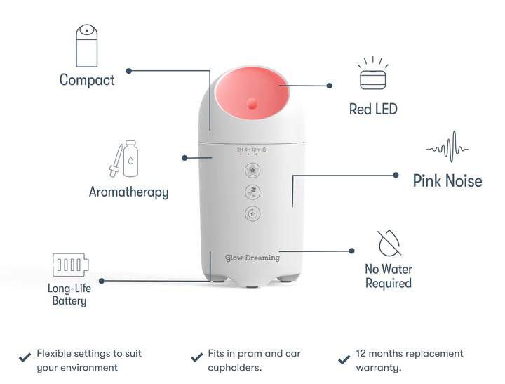 Use your Glow Travel Sleep Easy for 2 or 4 hours, or let it run all night long.