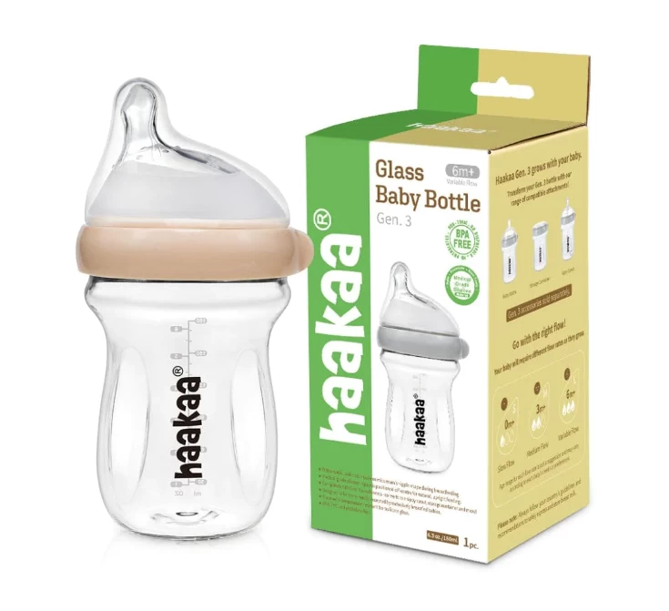 The Haakaa Glass Baby Bottle 180ml is ergonomically designed to provide the most natural feeding experience for your baby.
