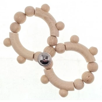 The Hess-Spielzeug Rattle Motor Eight with Balls Natural features a bell and 8 parts mounted on an elastic cord allows the rattle to be manipulated into a variety of shapes.