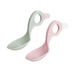 6 different grips that the child can use to practice fine motor skills. Five finger- , precision-, thumb- and transverse grip are a much more useful grip than the “whole hand grip” that a lot of childrens spoons invite to. The child trains his fingers instead of the arm and gives an intuitive transition from eating with his hands. The hole in the Spoon provides contact between the thumb and index finger for increased stability, and if the child wants it, it may put their thumb or index finger for a secure grip.