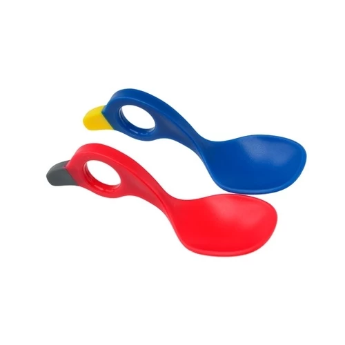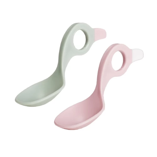 The hole in the spoon provides contact between the thumb and index finger for increased stability, and if the child wants it, it may pierce the thumb or index finger for a secure grip.
