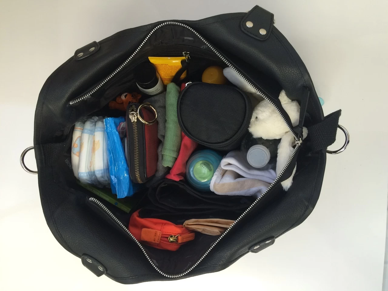- Multiple storage pockets inside and out – perfect for storing nappies, wipes, keys, phone, tablet and a change of clothes