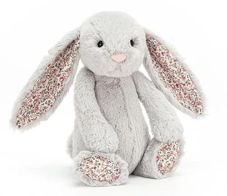 Jellycat Bashful Blossom Bunny Medium loves flowers so much that she wears them on her paws and ears!