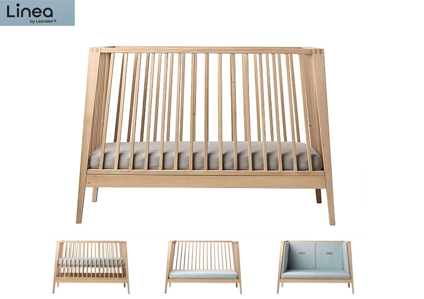 We know that your little one grows up so fast. The Linea baby cot can therefore be transformed into a classy sofa that fits both a teenage room or a living room.
