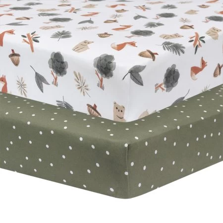 Living Textiles 2pk Cot Fitted Sheets Forest Retreat Features