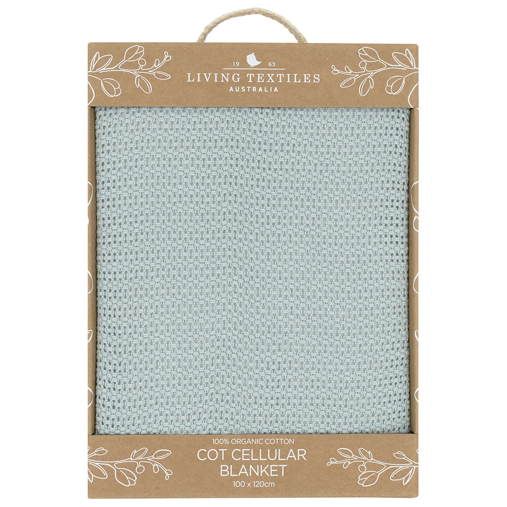 The Living Textiles Cot Cellular Blanket Sage is made from 100% organic cotton knit, this super-soft cellular blanket is the perfect blanket to help baby regulate their body temperature.