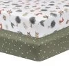 Living Textiles Organic Muslin Co-Sleeper Sheet 2pk Banana Leaf/Teal Features
