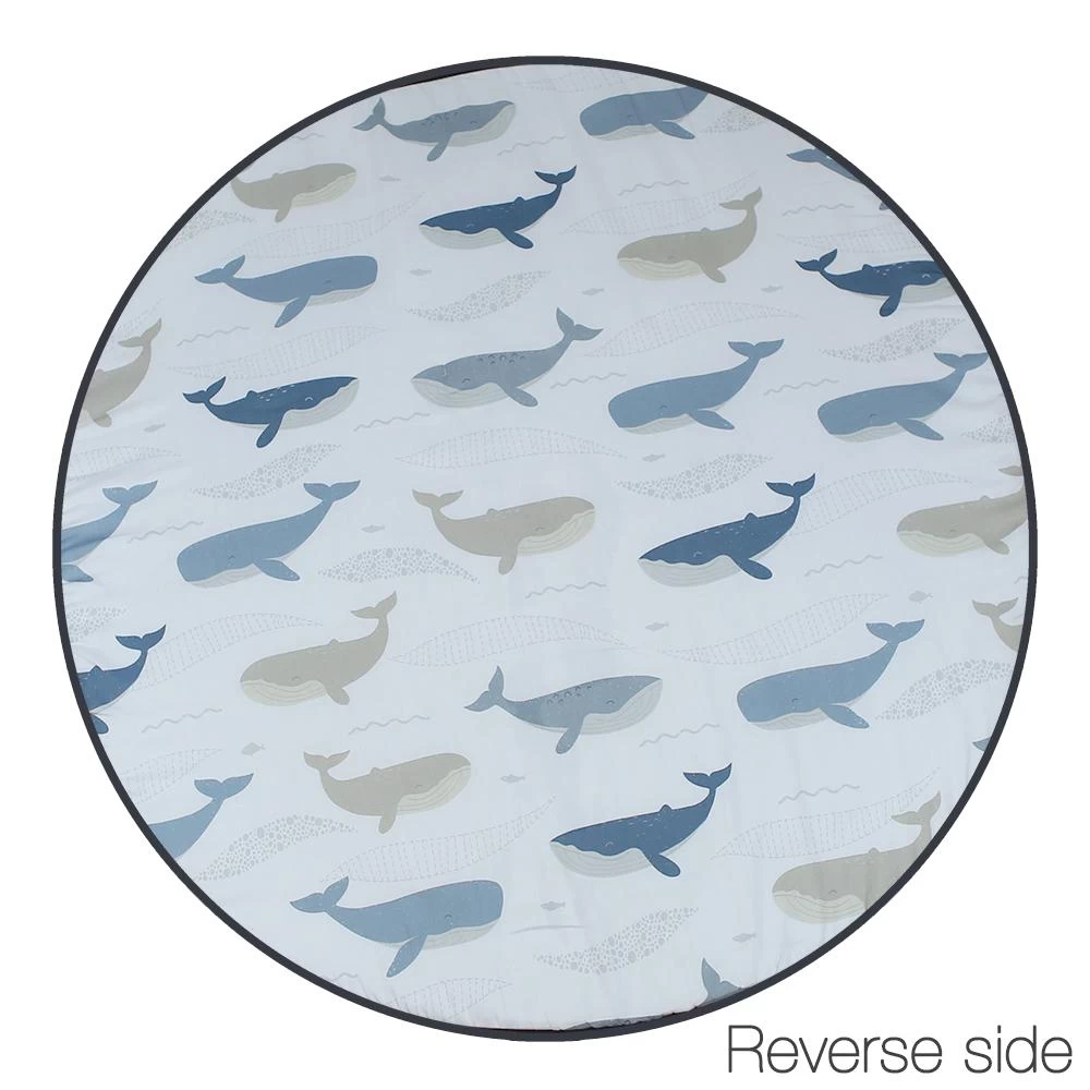 The Lolli Living Oceania Play Mat with Milestone Cards is perfect for playtime, tummy time or at the park, our Lolli Living Oceania round play mat features gorgeous linen and denim whale applique with intricate embroidery and a fun reversible whale print on the other side.