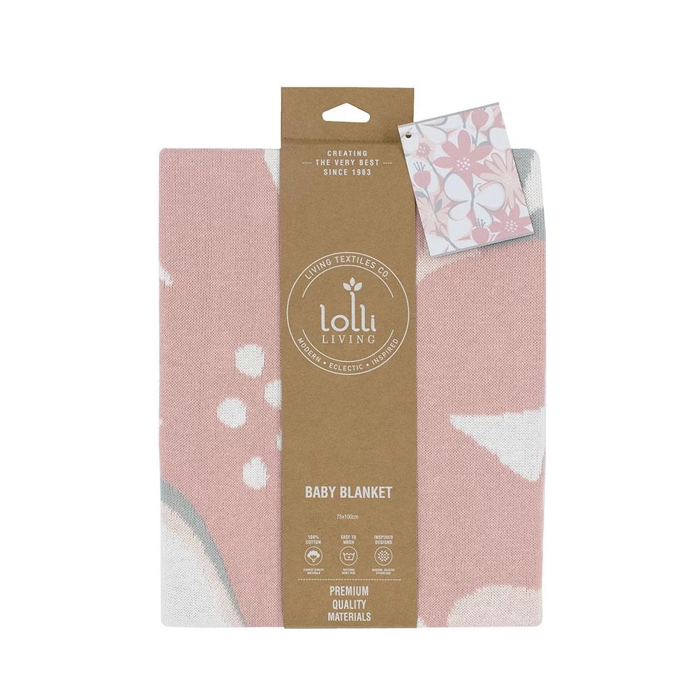 The Lolli Living Pram Blanket Meadow is a versatile and light weight, this generous 100% cotton knit blanket is adorned with flowers and butterflies, that is sure to become a take a long favourite.
