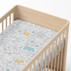 Urban Safari cot quilt, Urban Safari cotton sateen fitted sheet, animal crackers cotton sateen fitted sheet and reversible pillowcase.