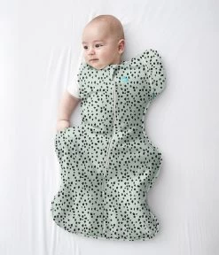 Love To Dream Swaddle Up Transition Bag 1.0 TOG Animal Print Olive is the easiest and gentlest way to help your baby graduate from swaddling while maintaining the snug secure feeling of being swaddled.
