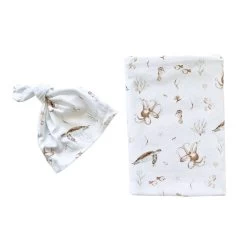 The Mini & Me Baby Wrap Set Oceania is luxuriously soft & stretchy. It comes with a matching topknot headband, perfect for your newborns birth announcement.