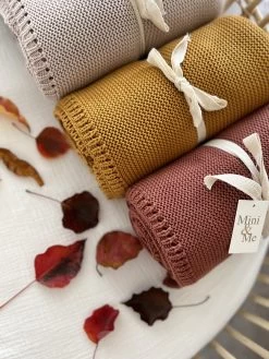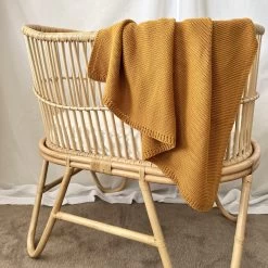 The Mini & Me Cable Knit Blanket Mustard is lusciously soft and perfect the newborn, toddler or child in your life.