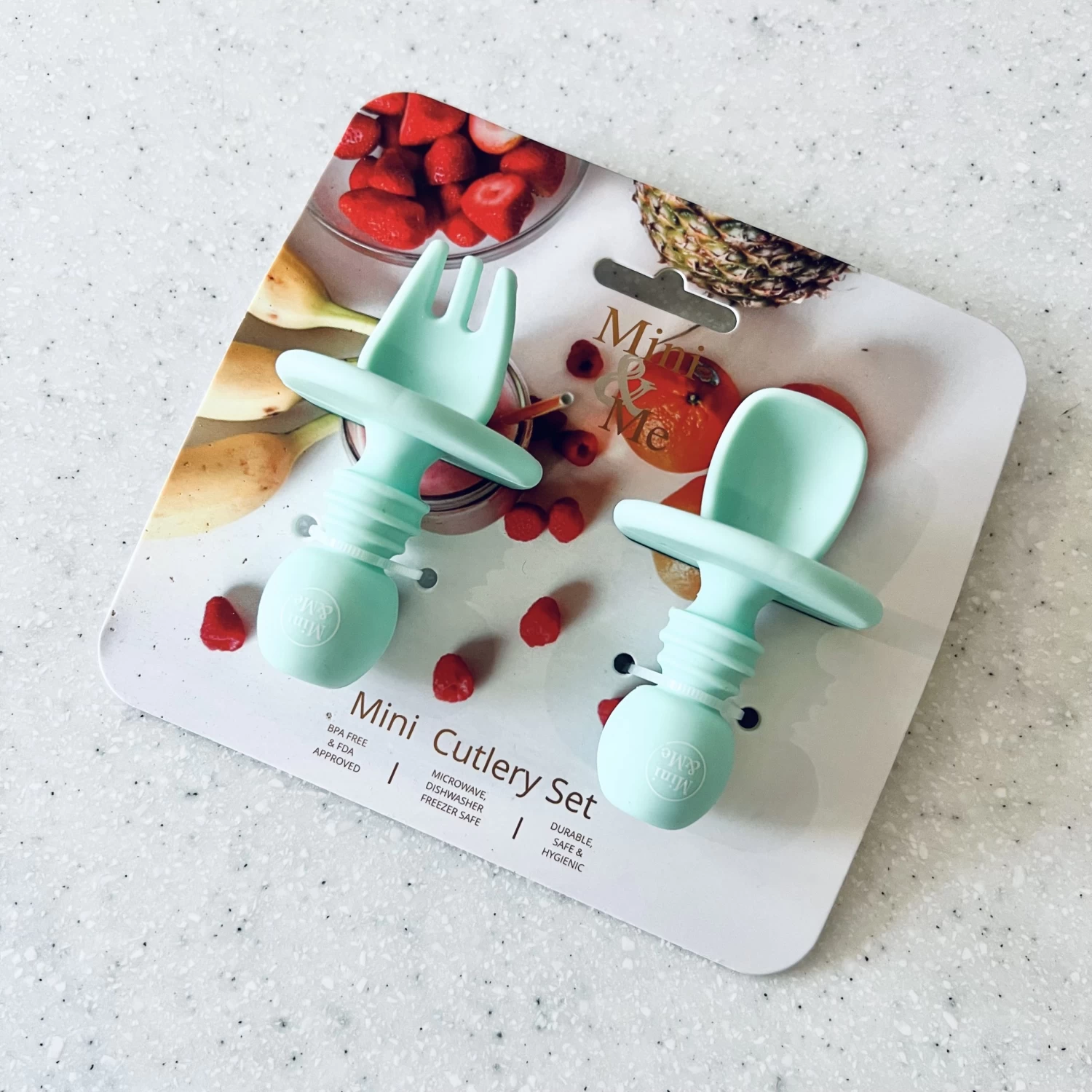 Have you ever noticed your little one wants the spoon or fork you hold? With the Mini & Me Mini Cutlery Set you can give them their own! Allowing this independence when feeding is key to your little ones developement, improving their fine motor skills, having fun and creating a little mess!