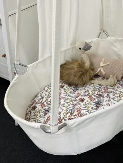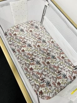 The Mini & Me Organic Fitted Bassinet Sheet Native Garden is luxuriously soft & stretchy allowing it to fit bassinet mattresses & change pads/mats of different shapes & sizes. That’s right, not only does it fit your Bassinets, you can use it as a change pad cover, in your co-sleeper, in your pram, the options are endless.