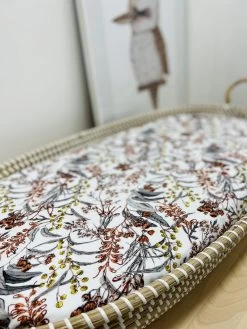 The Mini & Me Organic Fitted Bassinet Sheet Native Garden is luxuriously soft & stretchy allowing it to fit bassinet mattresses & change pads/mats of different shapes & sizes. That’s right, not only does it fit your Bassinets, you can use it as a change pad cover, in your co-sleeper, in your pram, the options are endless.