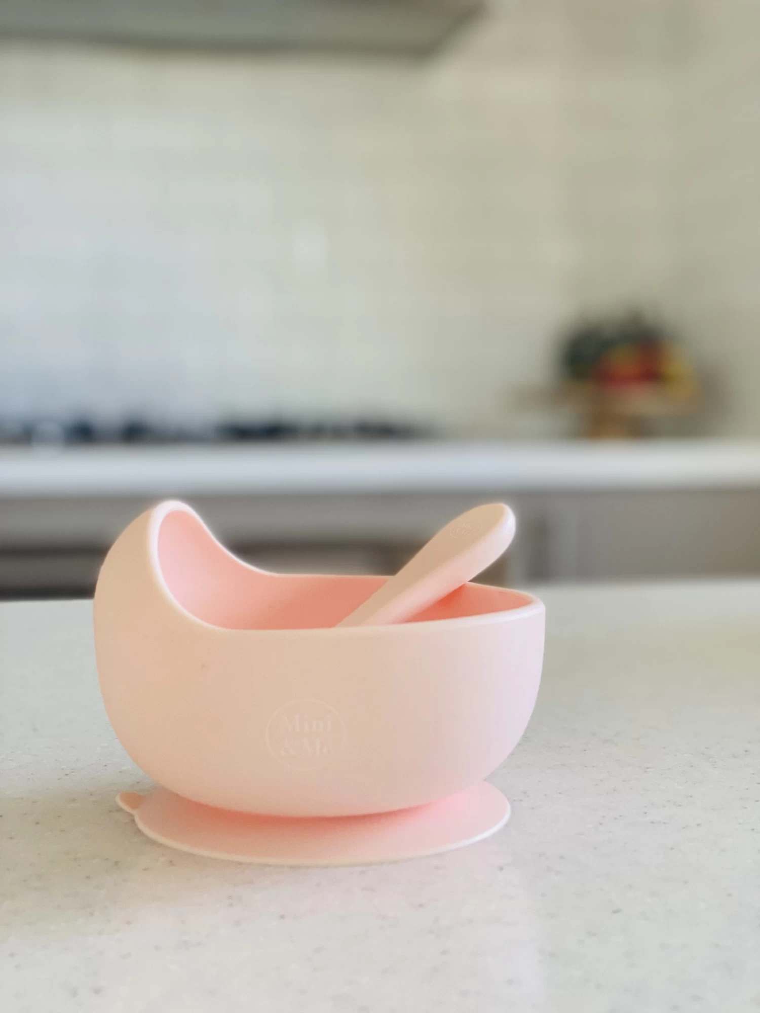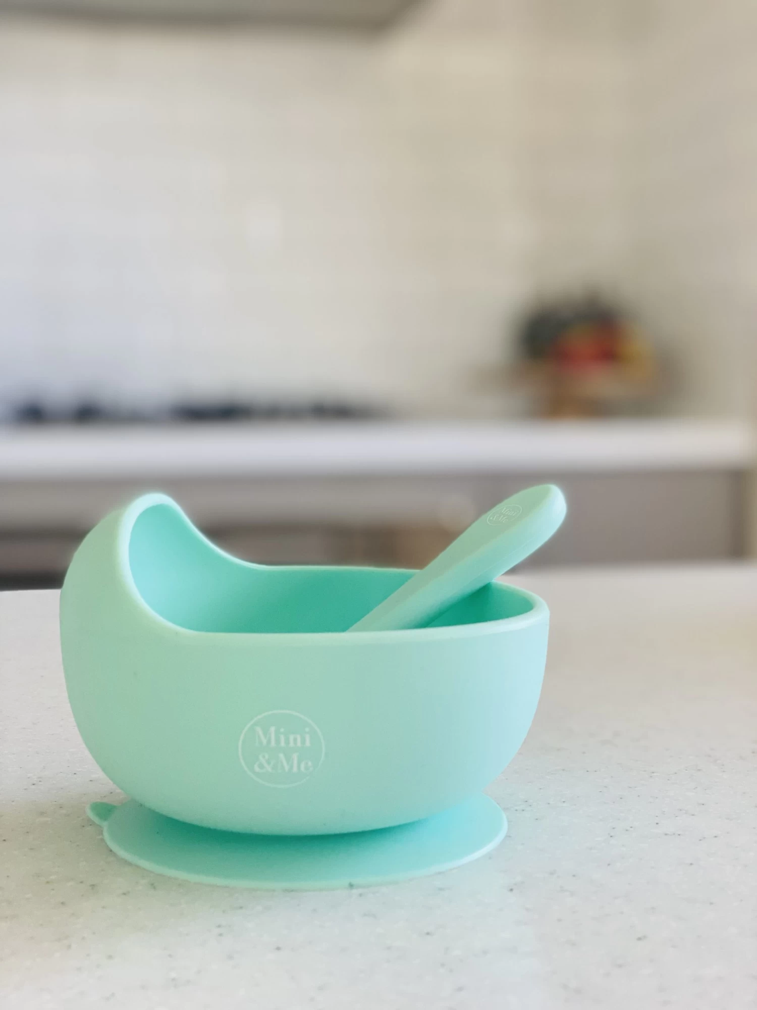 The Mini & Me Wave Bowl & Spoon with Suction Base is designed to grow with your infant and toddler. The addition of the ‘Wave’ allows your little one to scoop their food up and keep it mounded on the all-in-one-piece silicone spoon. Our suction based is designed to be used on even surfaces, keeping it attached to your high chair or table, stopping it from being knocked over or worse… on the floor.
