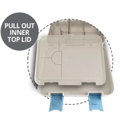 The inner tray has 4 sections (mirroring the silicon seals) plus 2 removable sections perfect for dips, yoghurt, fruit and dry snack. At the end of the day pop the tray in the dishwasher top shelf.