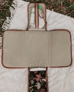 A generous pad and comfy pad for baby, sections for wipes and nappies/diapers.