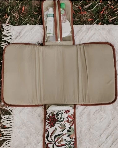 A generous pad and comfy pad for baby, sections for wipes and nappies/diapers.