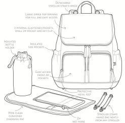 Grab the handle of the nappy backpack and sling it on your back with the adjustable padded shoulder straps, or attach it to the pram using the complimentary stroller clips when heading out & about.