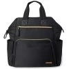 This attractive nappy bag comes with handy pockets to corral all your supplies, and it includes a cushioned changing mat, insulated bag for baby’s bottle, and a zip top purse for dirties.