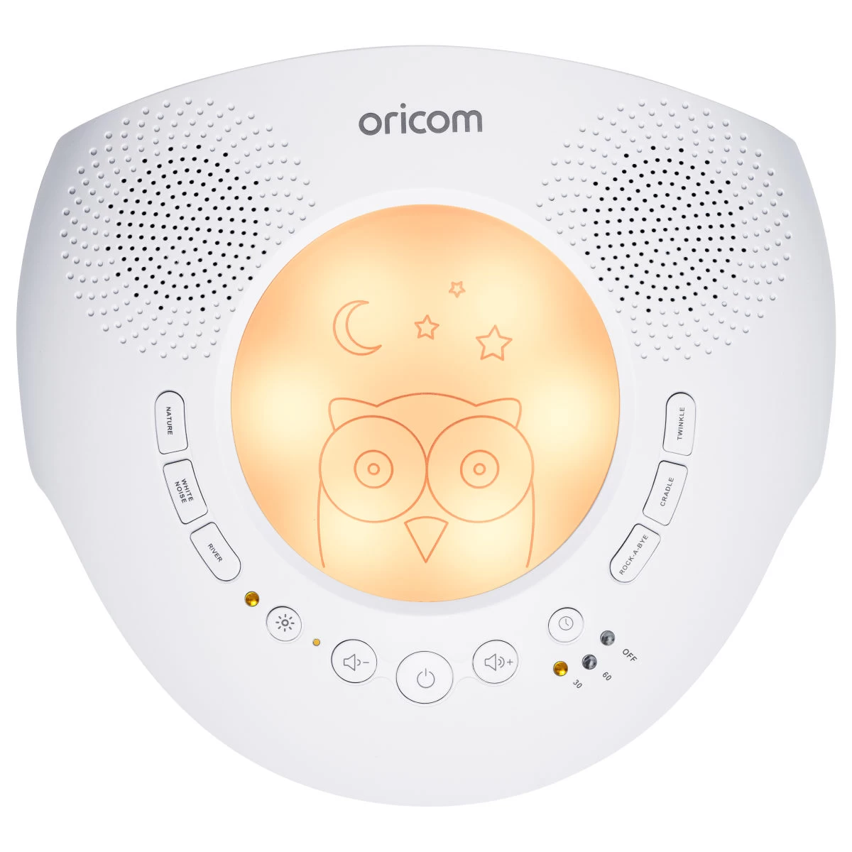The Oricom Soothing Sound Machine with Night Light assists in creating a calm and relaxing environment in the nursery. Select your choice of sound and the brightness setting on the night light, and watch as your little one is comforted as they slip into a restful sleep.