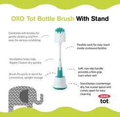 OXO Tot Bottle Brush With Stand Grey the ersatile brush for cleaning a variety of baby feeding equipment