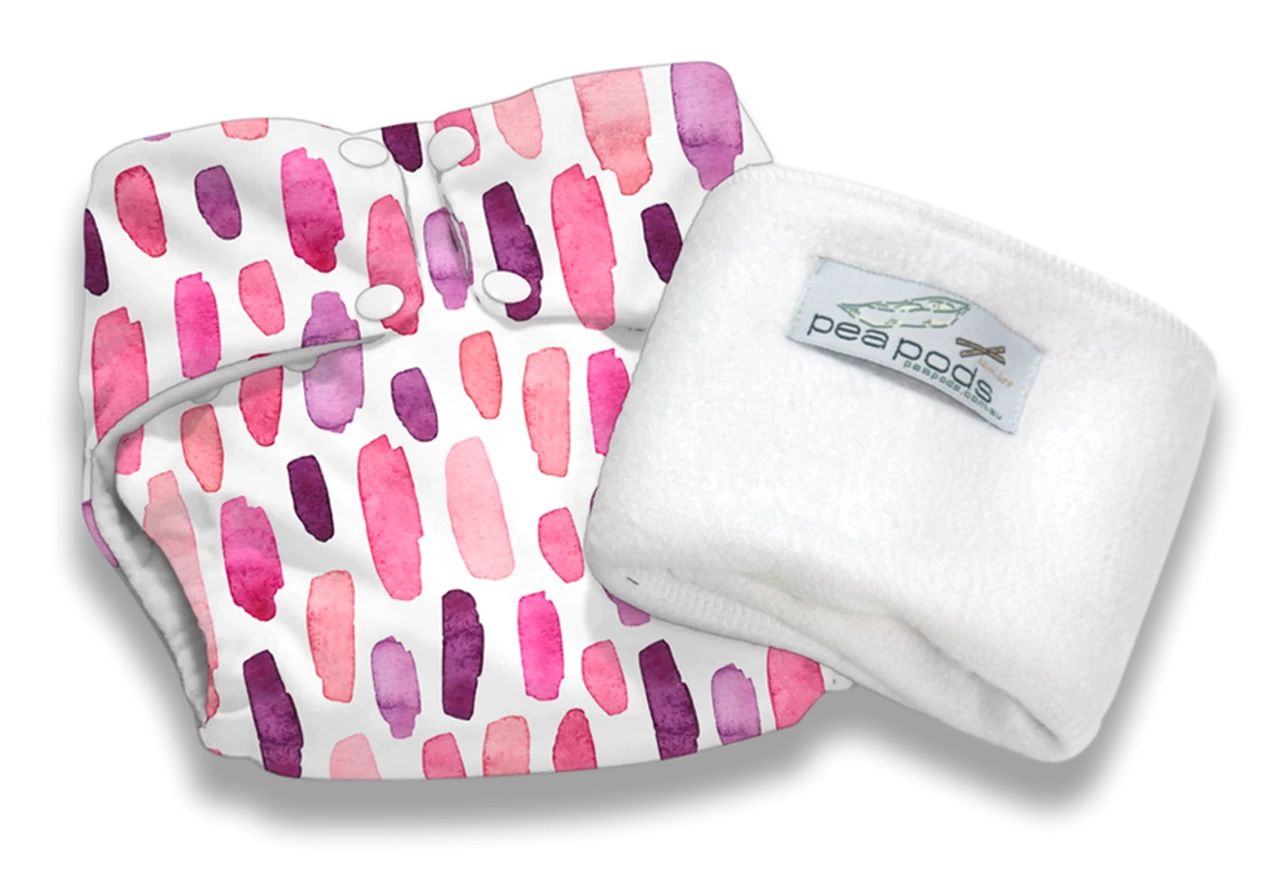 The Pea Pods Reusable Cloth Nappy Pink Watercolour comes as a complete unit – absorbent insert included. The absorber is made from bamboo. Bamboo is ultra absorbent, naturally antibacterial and a sustainable resource.